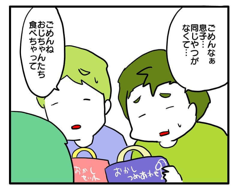 代わりのお菓子を買ってきて、ようやく息子に直接謝罪した夫と義弟。