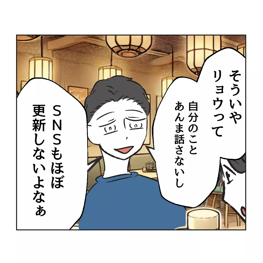 ひさえを言いくるめて参加した飲み会で、上機嫌のリョウ。 友人たちが妊活や出産の話題で盛り上がる中、リョウはなぜか自分に子どもがいることを話そうとしません。