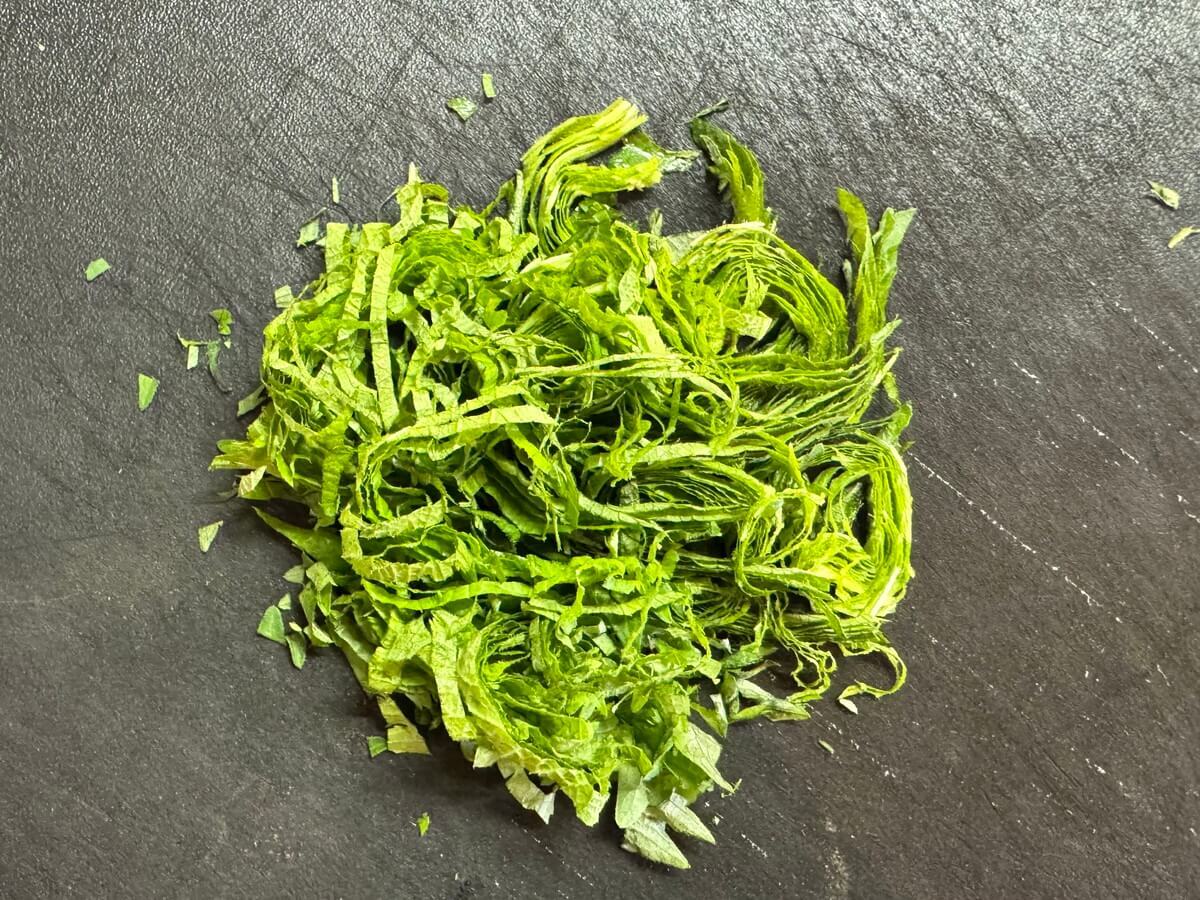 大葉は千切りにしましょう。