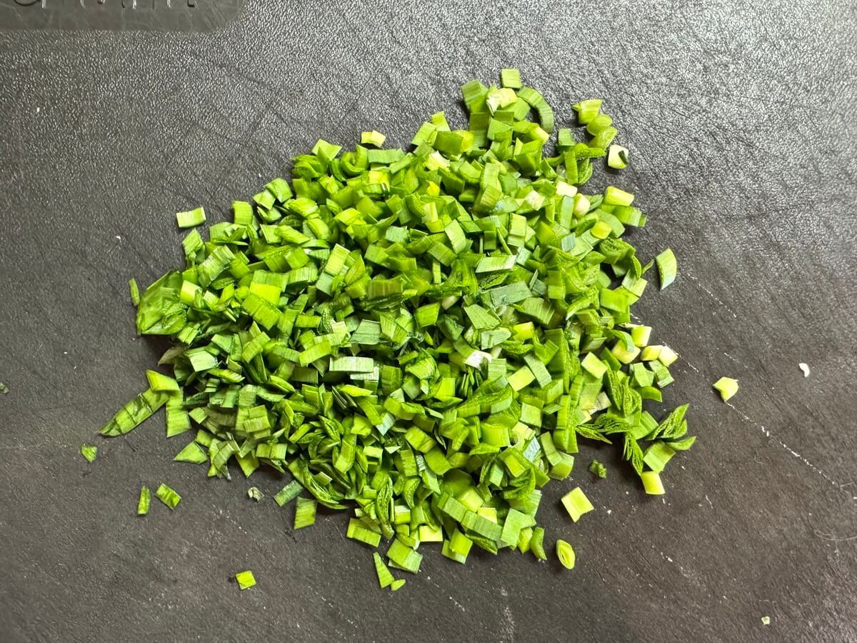 ニラは5mm幅くらいに細かく切ります。