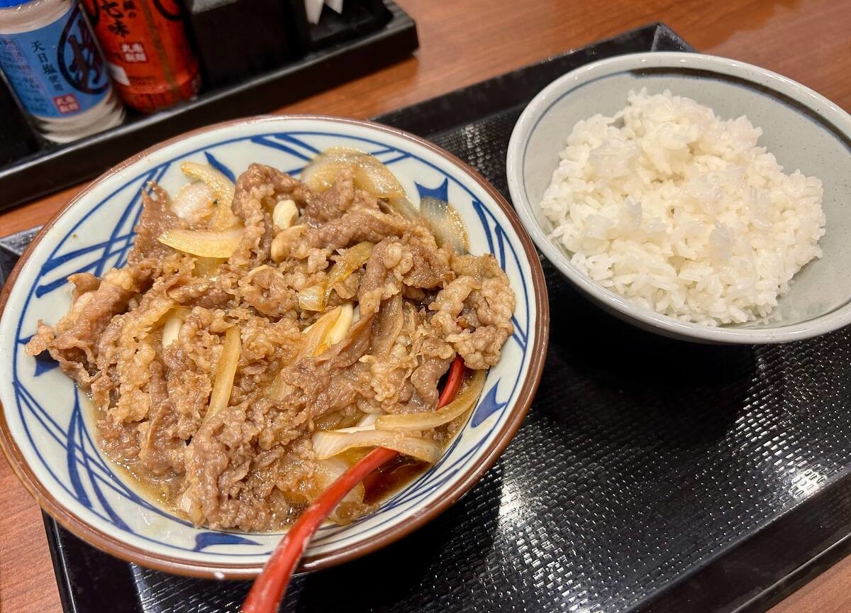 甘辛く味付けしたあつあつの牛肉と玉ねぎを打ち立てうどんと味わった後は、余った具材を白ごはんにのせてがっつりと召し上がれ♪青ねぎやおろししょうがを添えて、味変するのもおすすめです! #丸亀製麺 pic.twitter.com/owhd08OiVg