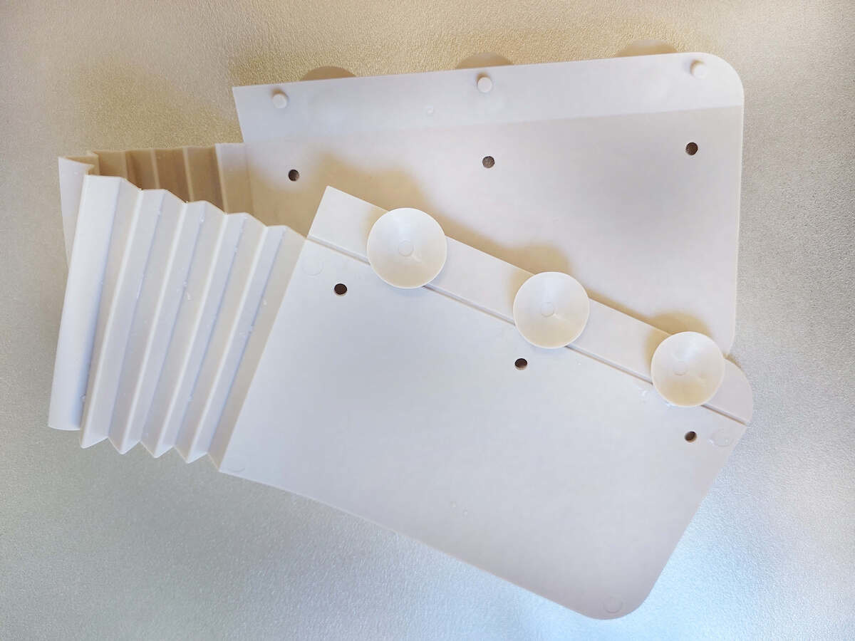 中央がじゃばらなので、角にもフィットして水跳ねを防ぐ優れものです。