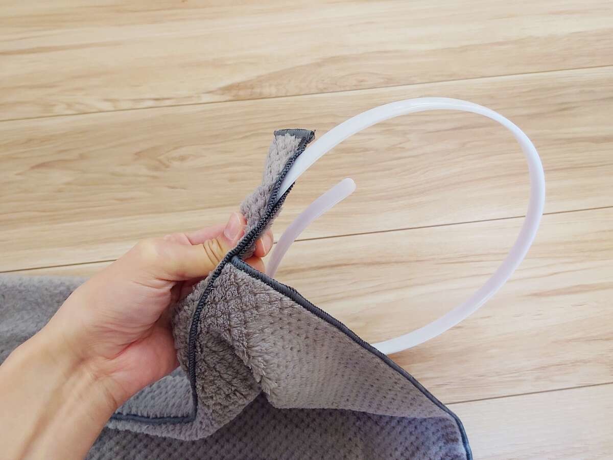 ウエスト部分に穴が空いているので、芯材を通していきます。