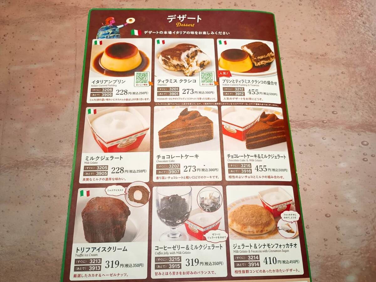 サイゼリヤは、安くて美味しいスイーツメニューが揃っています。
