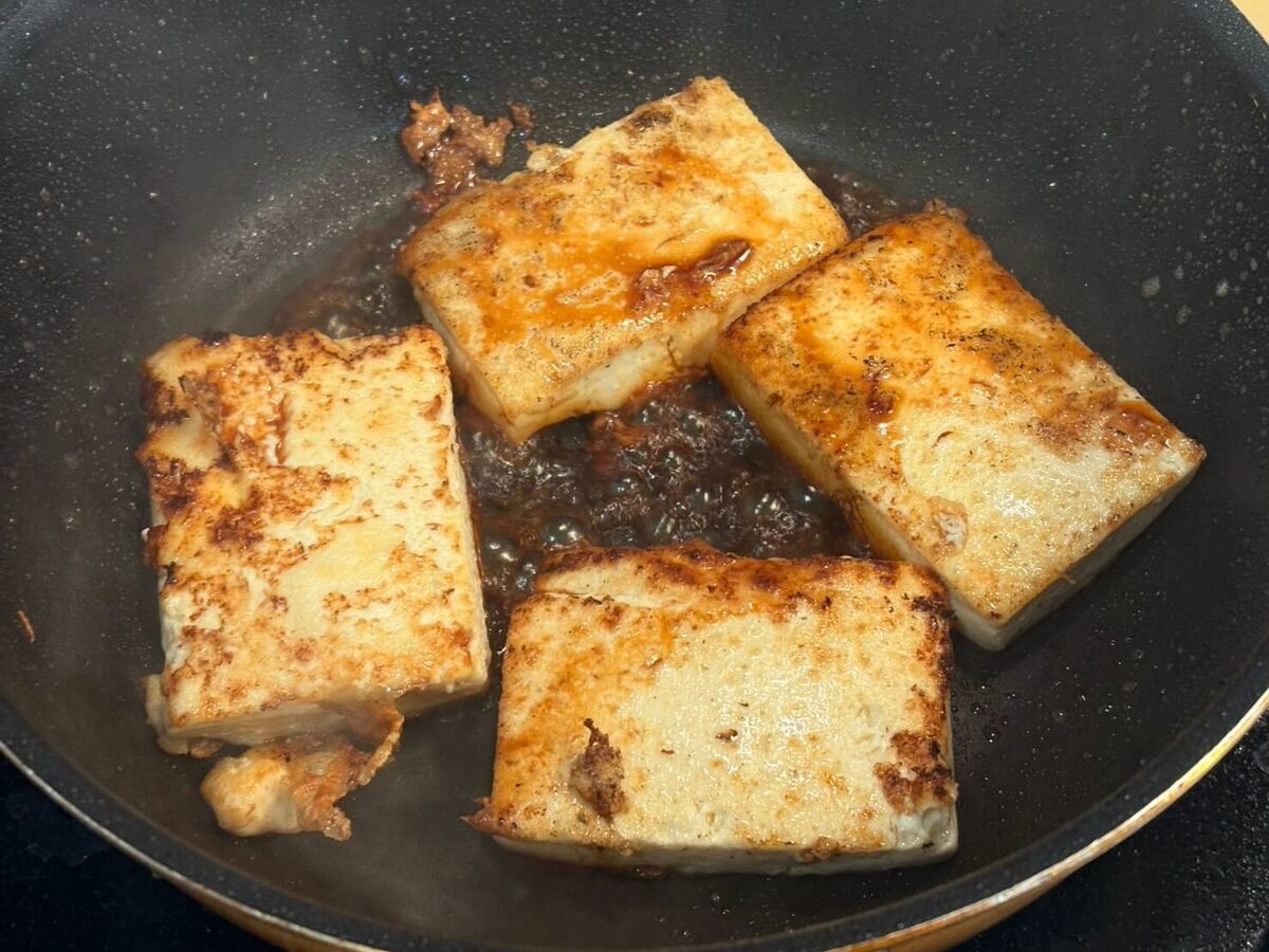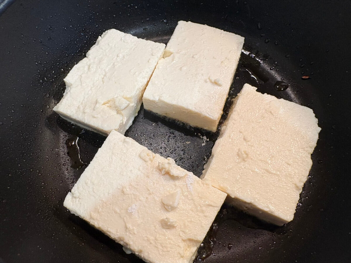 そのあと、同じフライパンに豆腐を入れて……