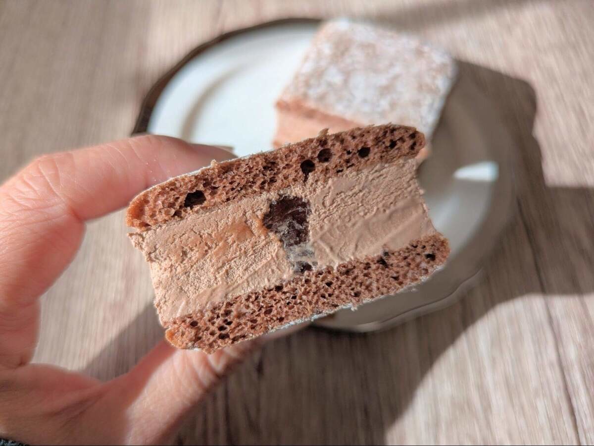 生地はふわふわで、口に入れるとほろほろと崩れていきます。アイスクリームはやさしいココア味。