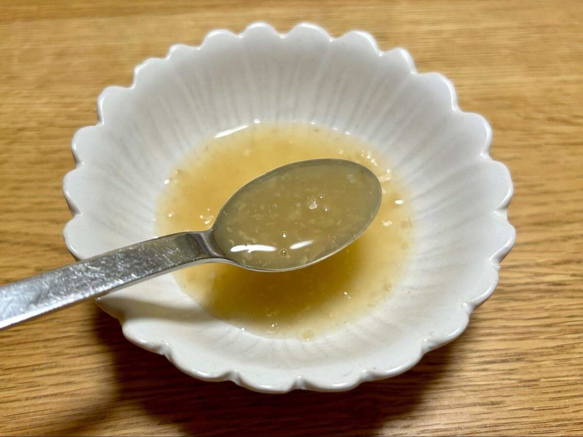 一般的なぽん酢よりもどろっとした質感。料理につけるとよく絡むのが嬉しいポイントでした。