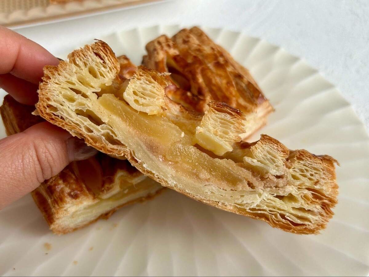 しっとりと軽やかなパイ生地と程よい甘みのりんごのフィリングがちょうどいいバランス。香ばしさもあり、パクパク食べられます。