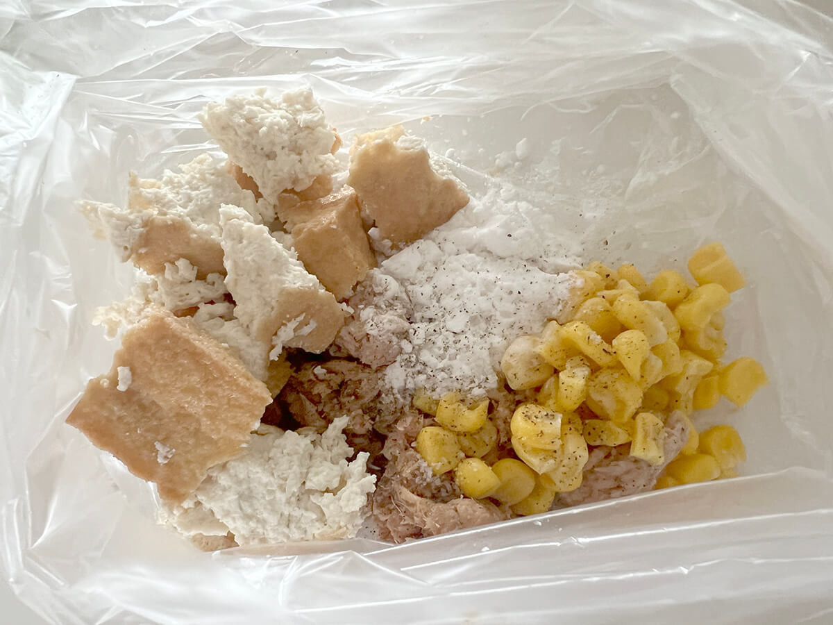 作り方①材料をビニール袋に入れて混ぜ合わせる