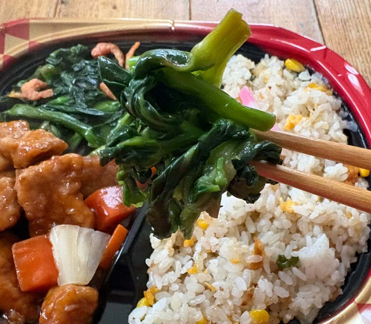 理由:筆者は45歳。昔はたくさん食べられましたが年々、胃が対応しきれなくなってきました。大好きな中華料理もお店屋さんで食べる時、多過ぎて食べきれなくなってきたんです。しかし、こちらの弁当。量が丁度良く、炒飯も酢豚も菜の花もバランスが最高です。お値段も激安。お店で同じ内容を食べるなら2,000円はするのではと思います。お財布にも優しいところが激推しです。