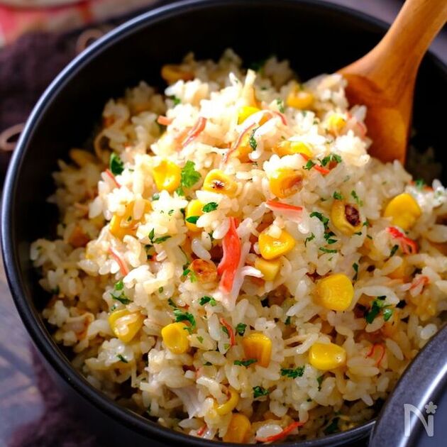 ⑦食欲が暴走する!コーンとカニカマの香ばし混ぜご飯