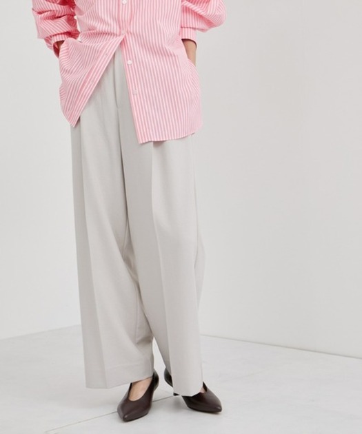 淡色トーンのカラーが、スタイルにやさしいニュアンスをプラスするワイドスラックス。春らしさは感じさせつつ、落ち着いた色味だから冬トップスと合わせても違和感なくまとまります。リラックス感のあるはき心地でも見た目は端正。今のワードローブに溶け込み、季節の切り替えを心地よく楽しめるアイテムです。