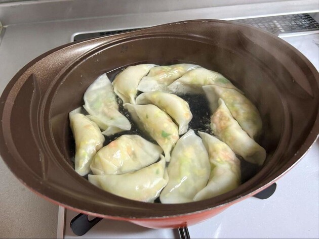包み終わったら、あとは鍋で水(分量外)を沸騰させ、餃子を茹でるだけ。茹で時間の指定がなかったため、しっかり5分ほど加熱してみました。
