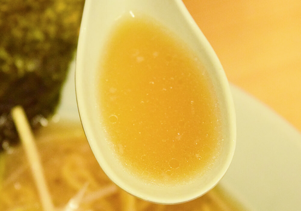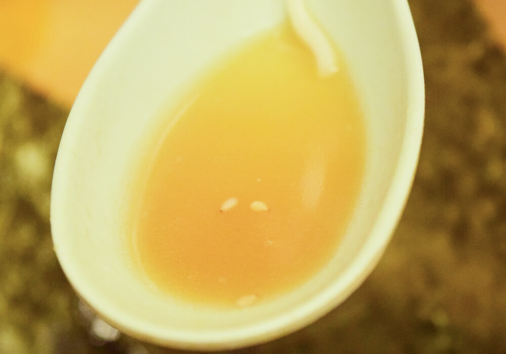 まずはスープをひとくち。ベースは醤油豚骨です。
