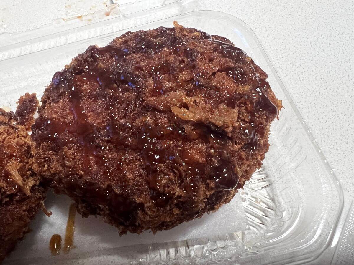 惣菜パン感覚で買ったんですが、挟まっているロースカツは正直、専門店レベルで冷めてもちゃんと美味しいです。