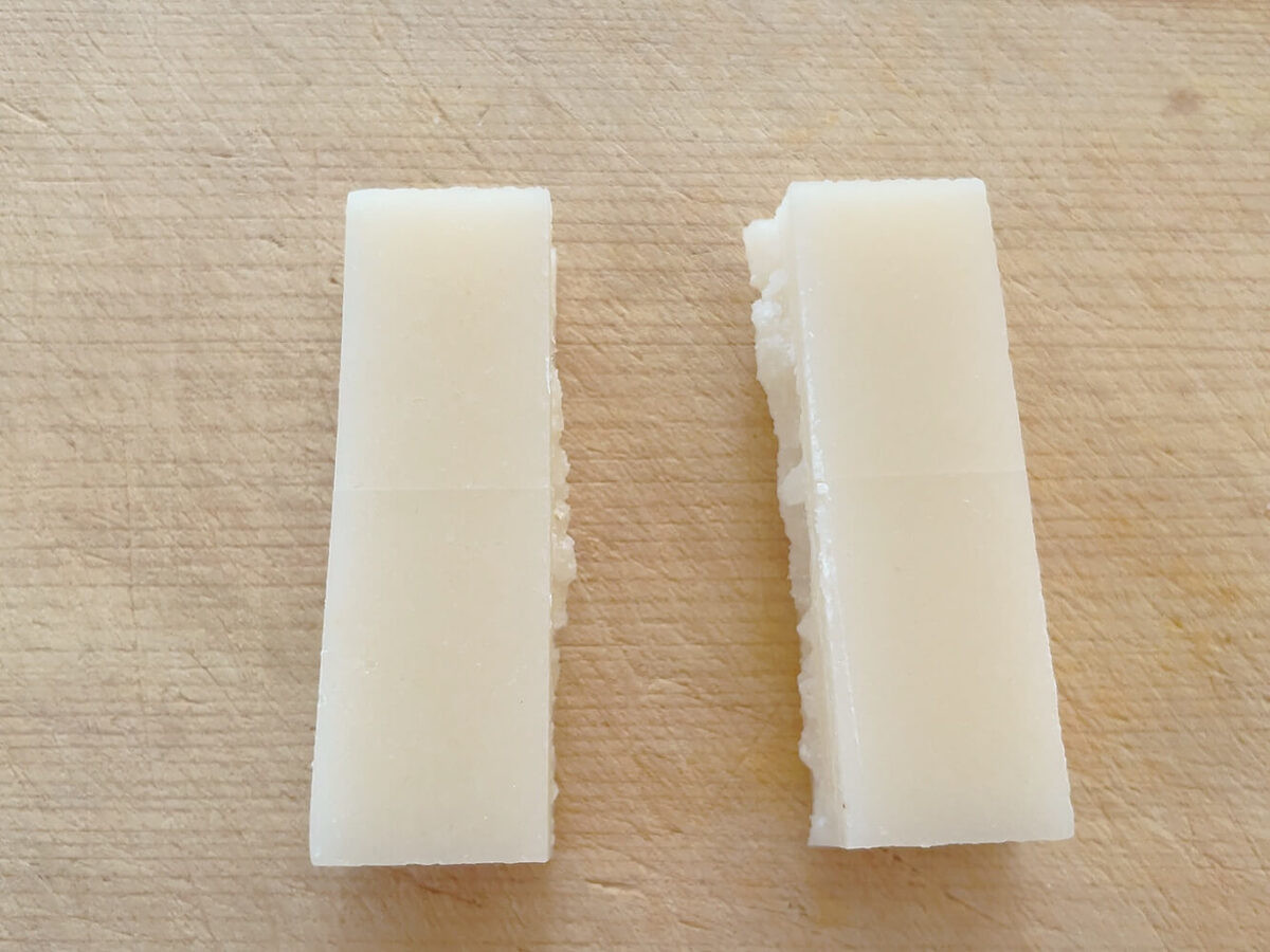 今回は家に余っていた切り餅を半分に切って使いました。