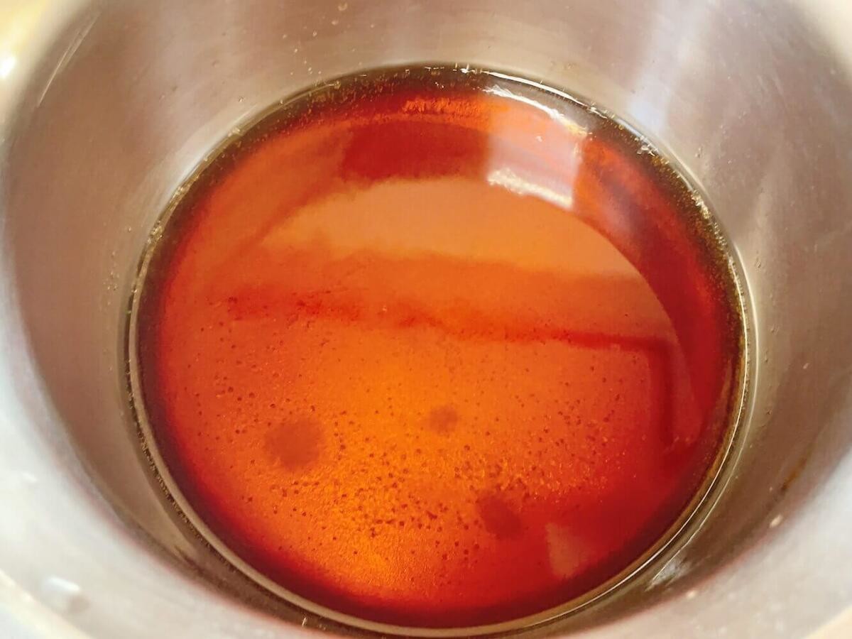 みりんを鍋に入れて、沸騰してから30秒ほど煮切ります。