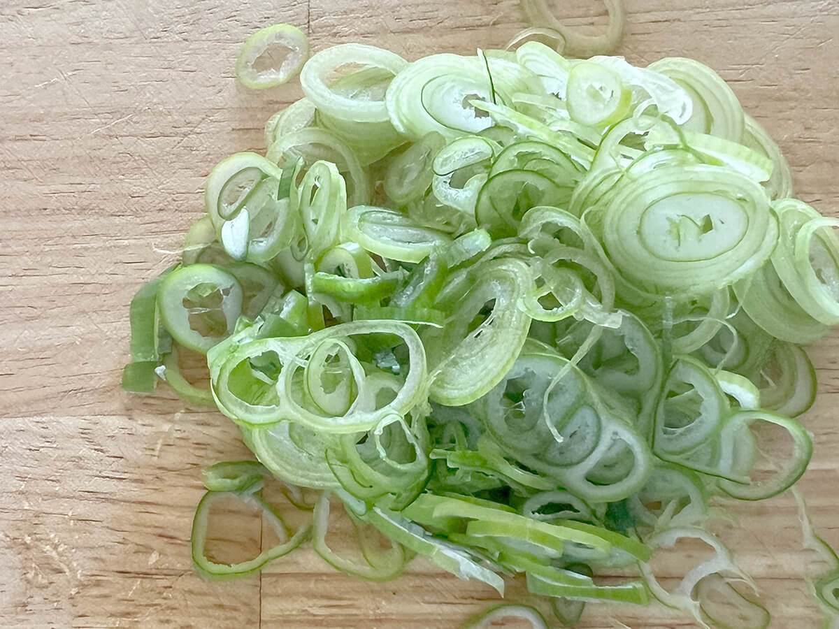【おまけスープ】の長ねぎの青い部分も小口切りにしておきます。