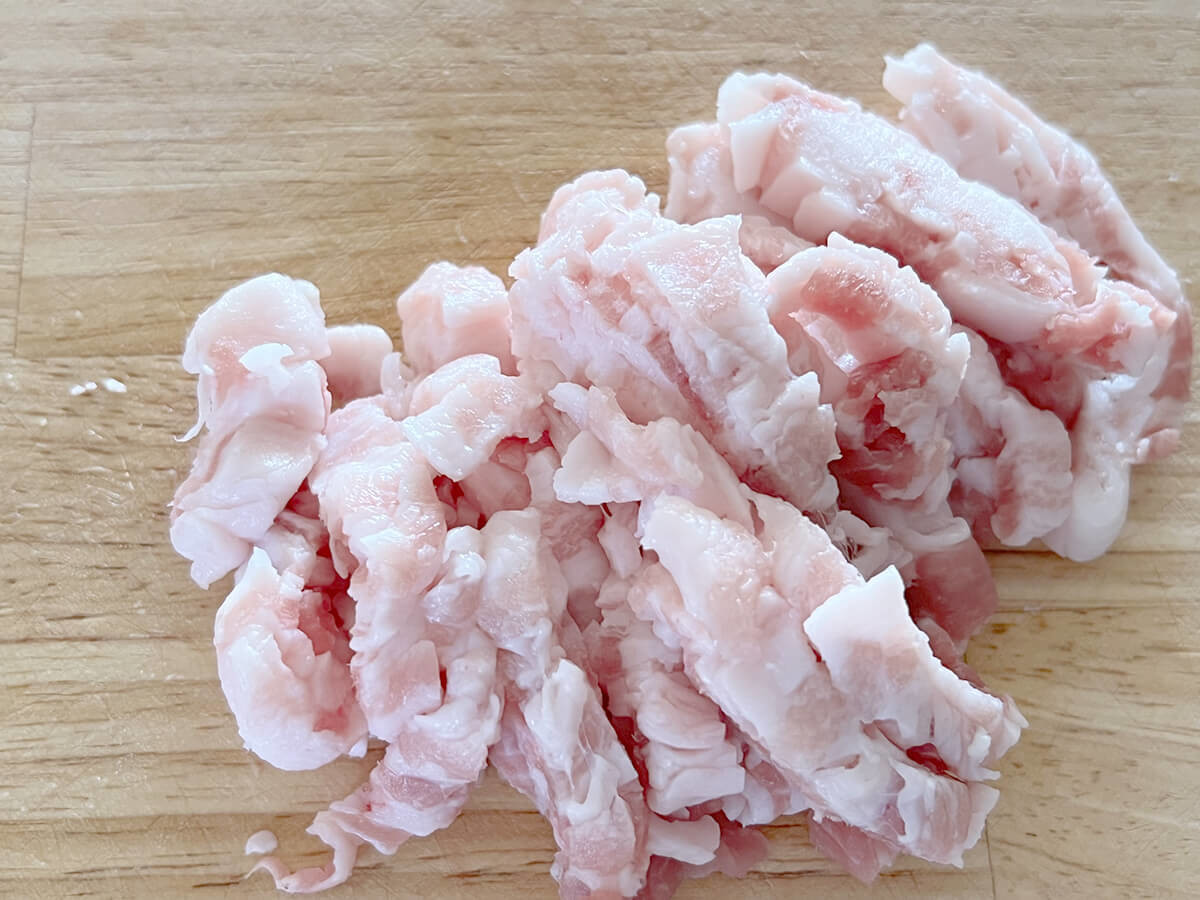 豚肉は1cm幅くらいに細かく切っておきましょう。