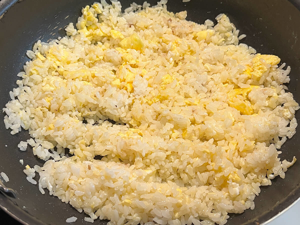フライパンにご飯を広げてご飯と卵が混ざったら焼いてあげるイメージで、とおっしゃっていました。