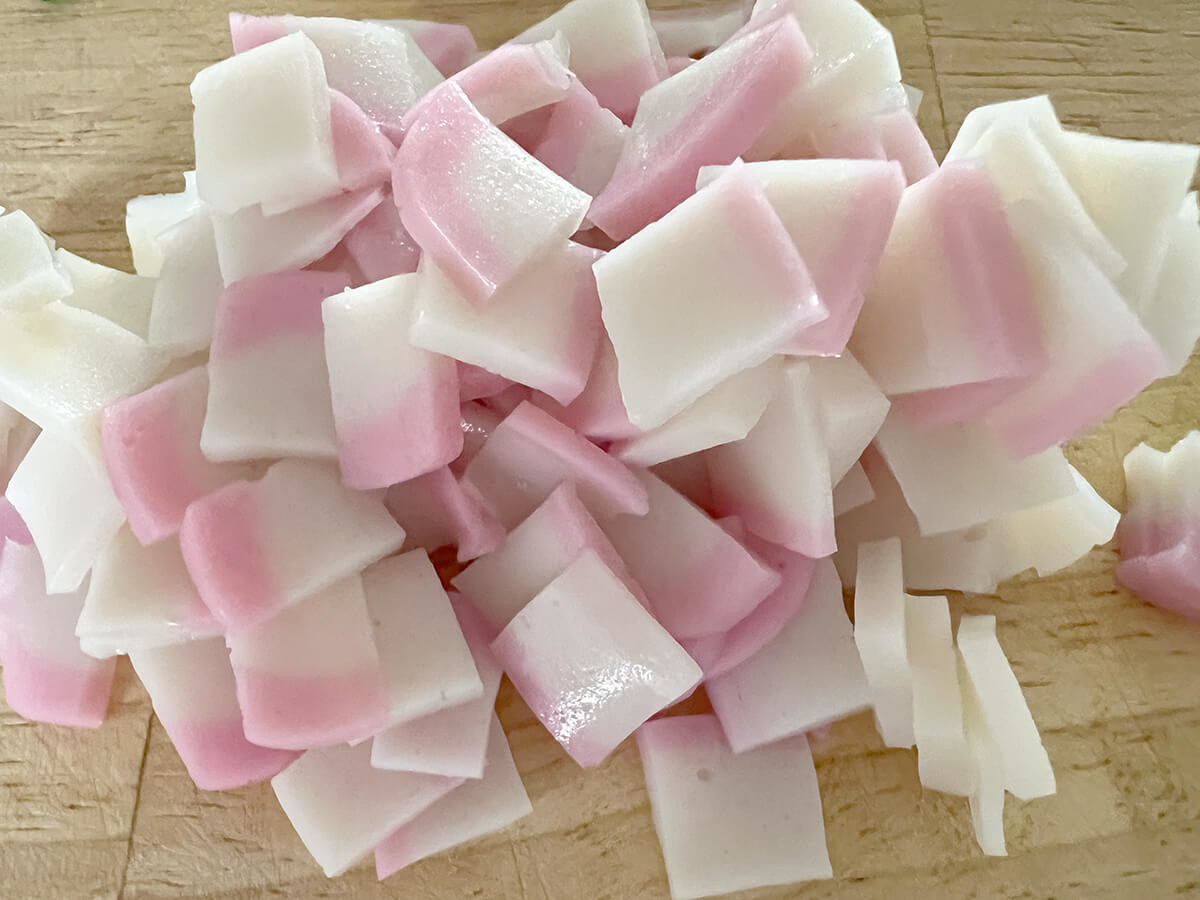 かまぼこは小さくスライスしておきましょう。