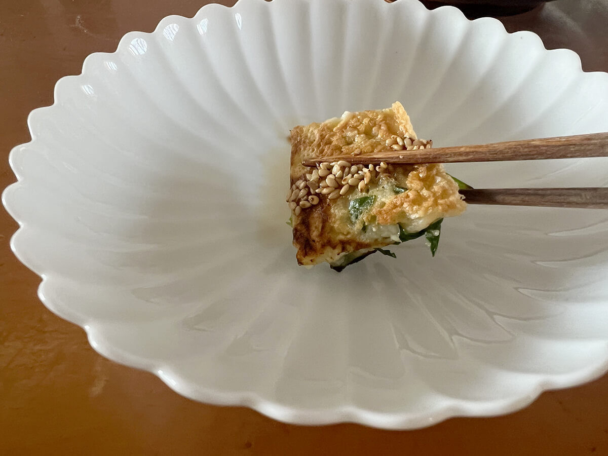 杵島直美さん「にらチヂミチーズもち明太入り」のレシピ