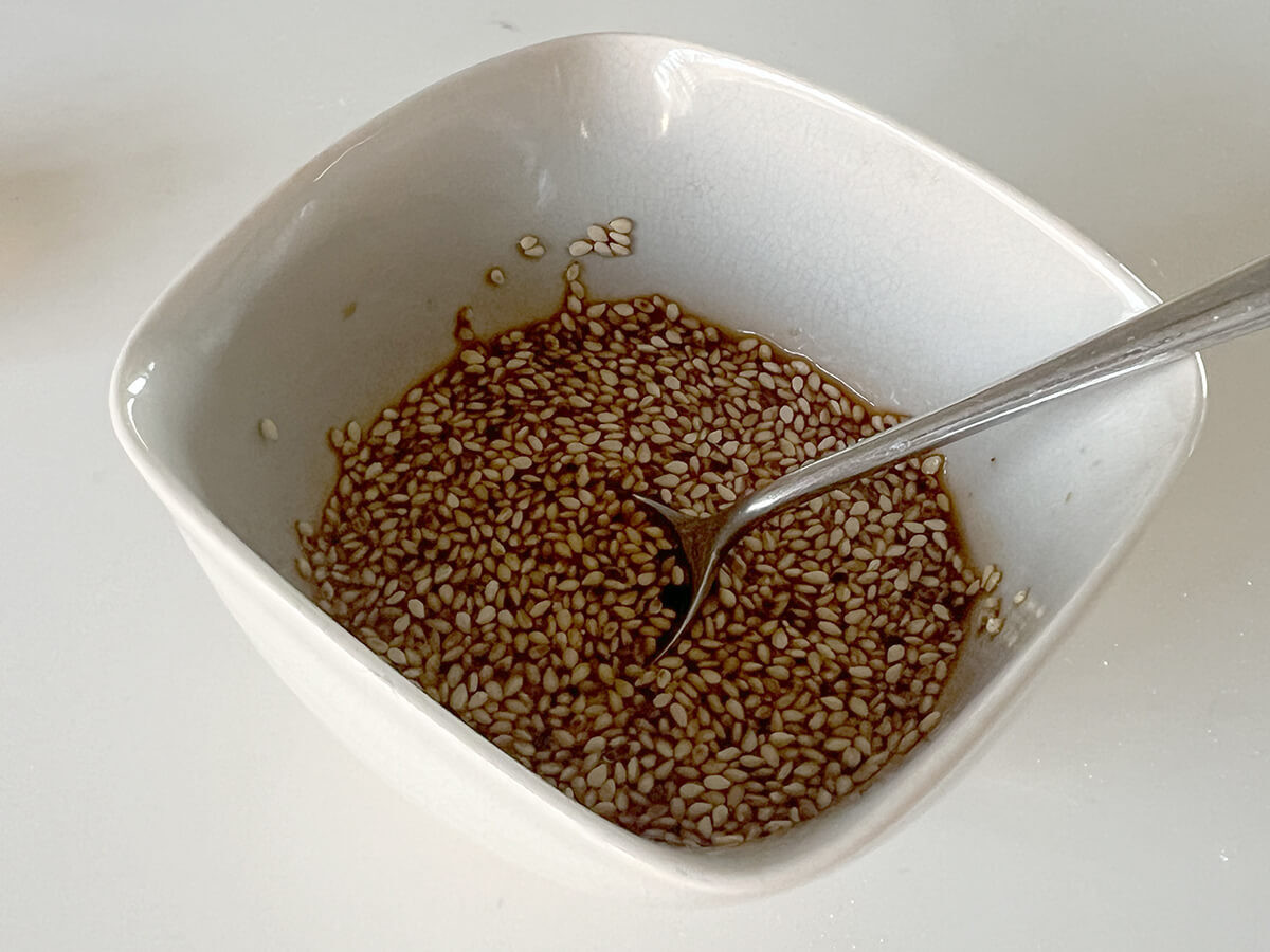 酢醤油はチヂミには欠かせませんが、この「白ごまたっぷり」というのが風味をプラスしてくれて、なお嬉しい。