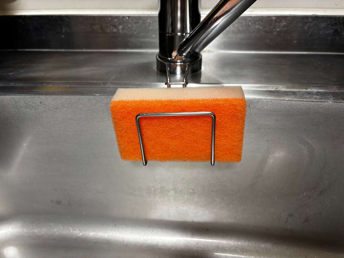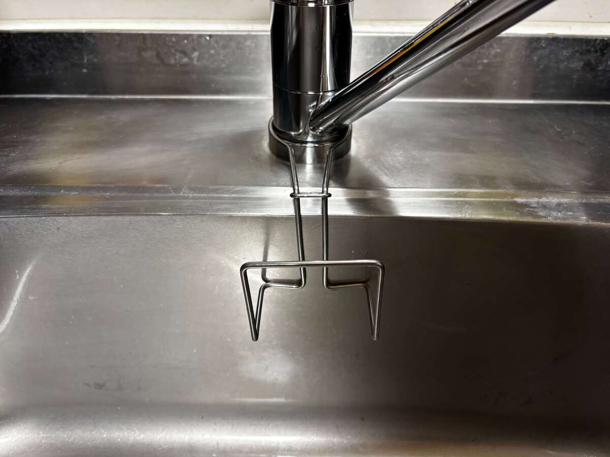 シンク掃除の手間を劇的に減らしてくれる、蛇口に掛けるタイプのホルダーです。