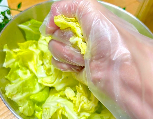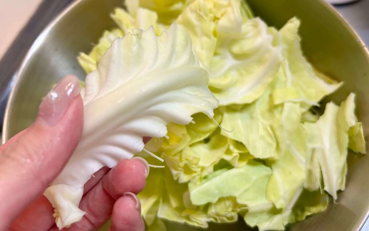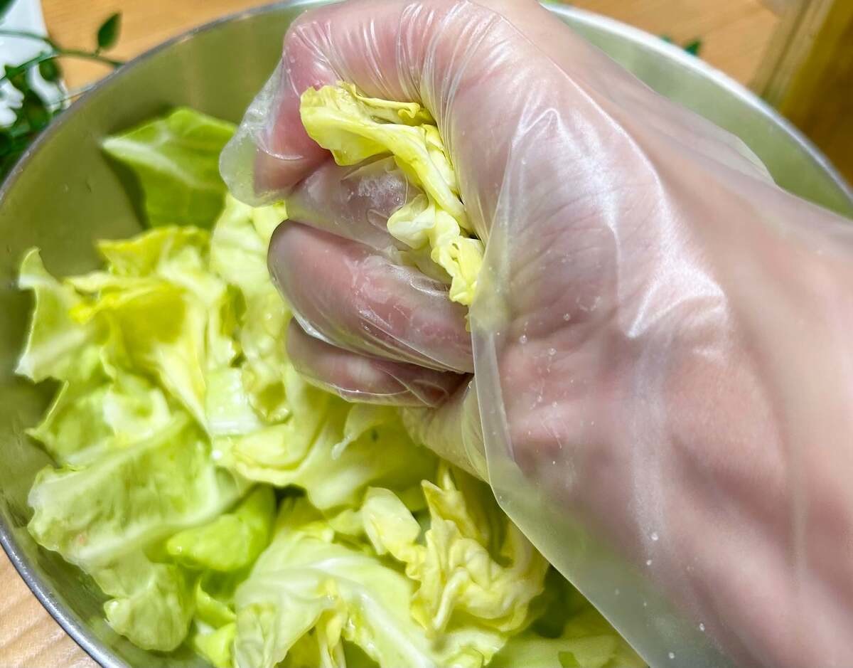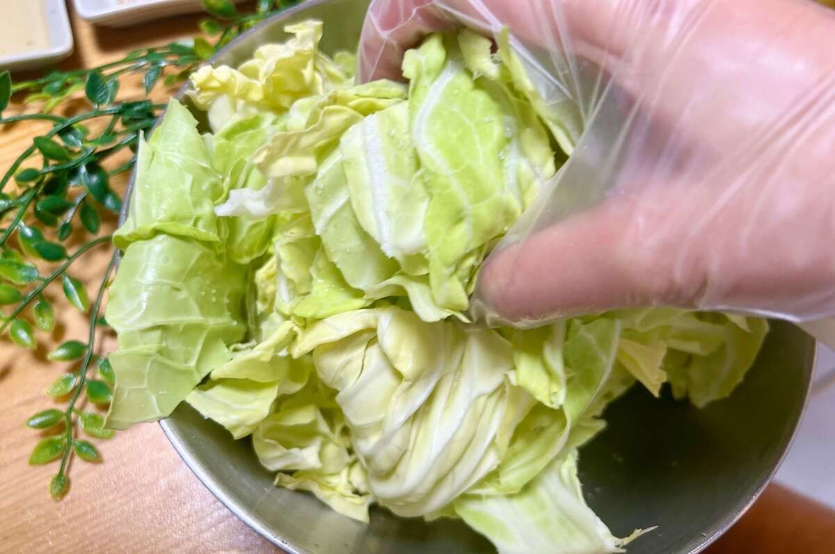今回は少し小さめのボウルを用意してしまったため、キャベツが溢れ出てしまいました……。