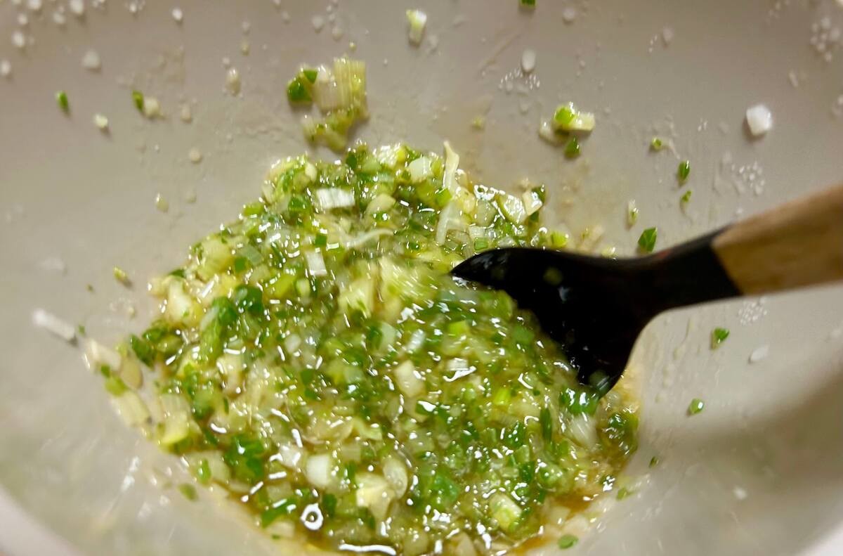 いつもネギ塩ダレを作る時は生で食べていたのですが、一度電子レンジで加熱することで、ネギとごま油の香りを引き出し、辛味を飛ばせるのだとか!