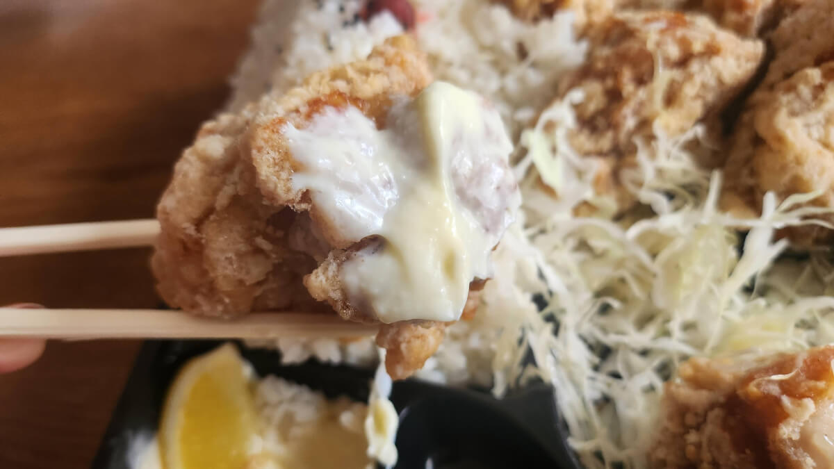 主役のからあげは、一つひとつが大きく、衣サクサク、中はジューシー。ザ・王道のからあげ!