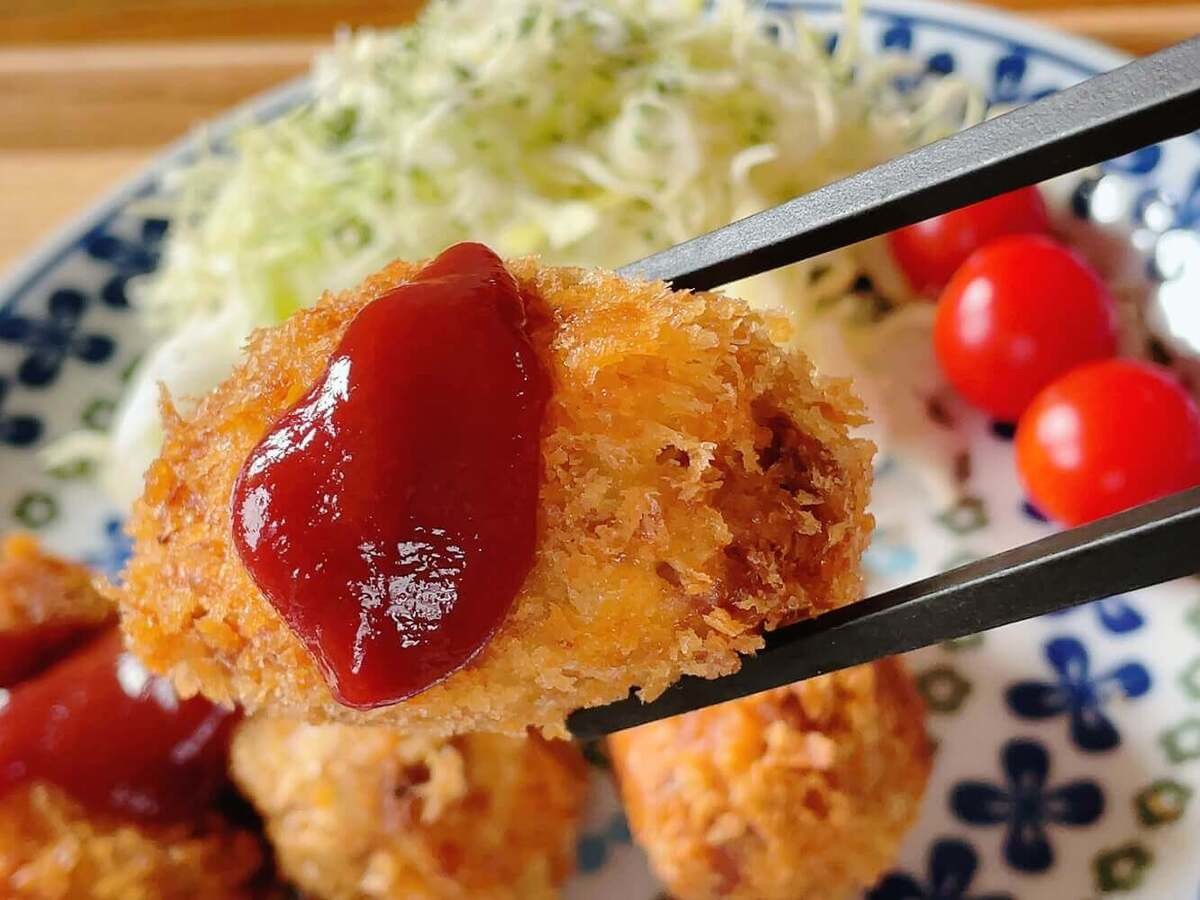 トマトケチャップ:豚カツソース=2:1の黄金比は、甘みの中にトマトケチャップのほどよい酸味が加わり、じゃがいもベースのやさしい味わいのコロッケによく合います。