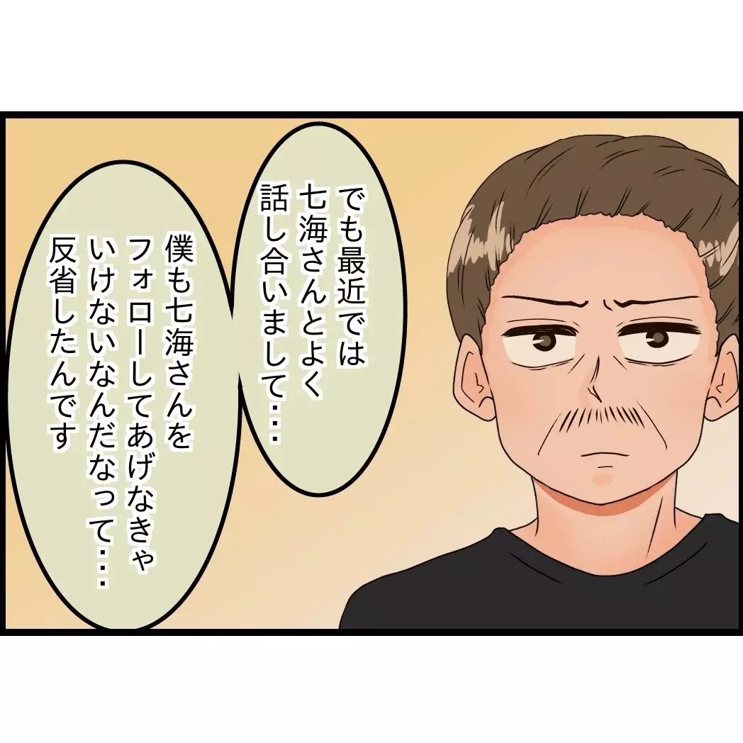 収入を盾に妊婦にも完璧な家事を強要してくるモラハラ夫・マコトに、ついに反撃に出たエースくんの姉・七海さん。ですが、マコトは「検討する」とだけ答えて席を立ってしまいました。