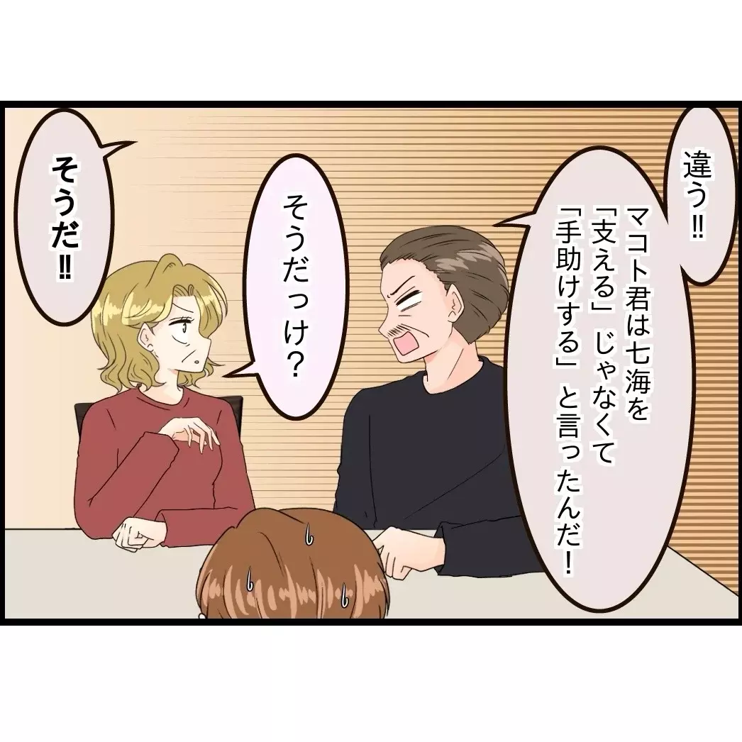 収入を盾に妊婦にも完璧な家事を強要してくるモラハラ夫・マコトに、ついに反撃に出たエースくんの姉・七海さん。ですが、マコトは「検討する」とだけ答えて席を立ってしまいました。