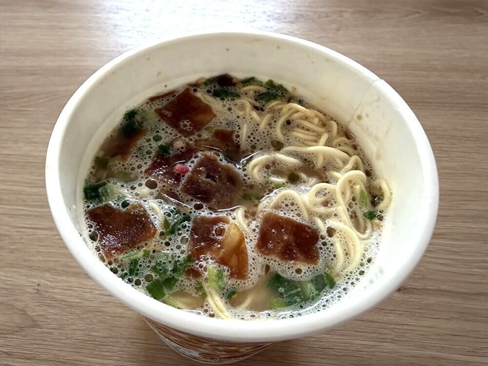 本場の豚骨醤油ラーメンを完全再現とまではいかないものの、カップ麺として考えれば、かなりおいしくて満足です。