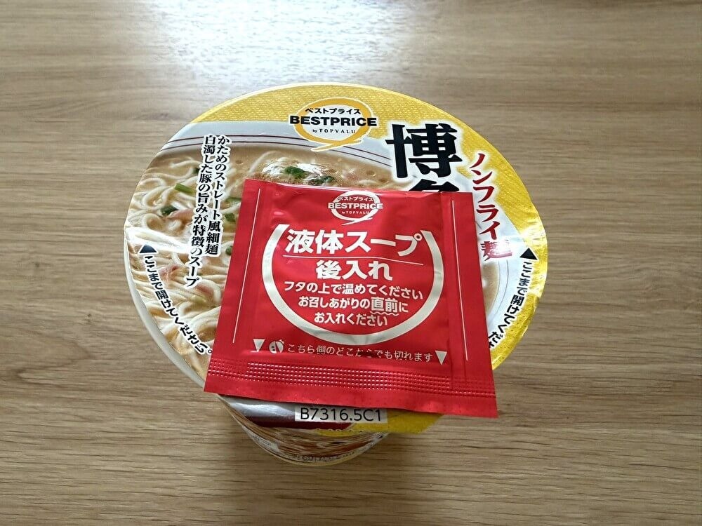 - 商品名:トップバリュベストプライス 博多豚骨ラーメン