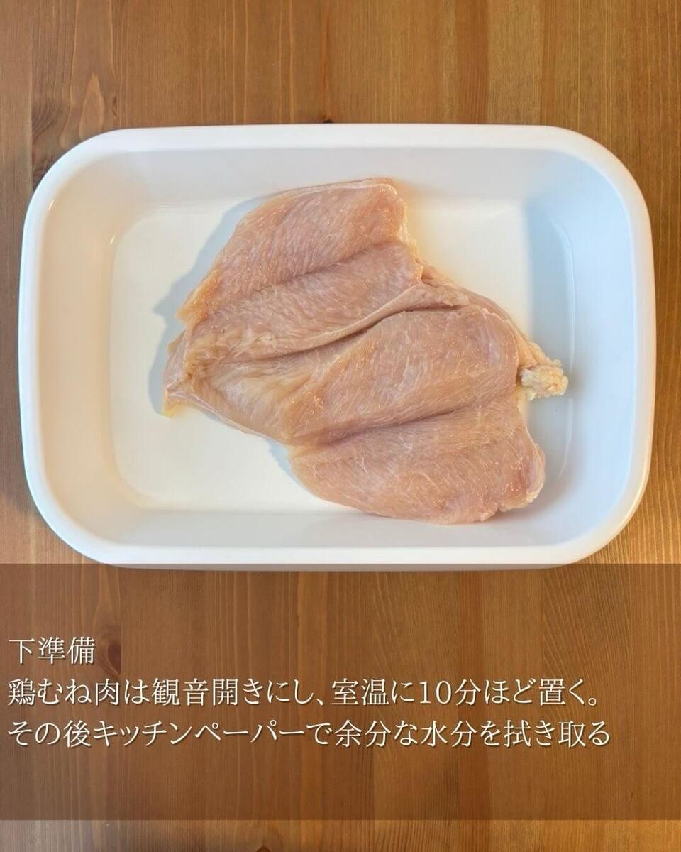 【下準備】鶏むね肉を観音開きにして時間を置く