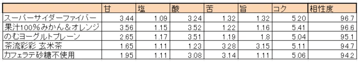 全員優秀…!という中で、特に注目されたのが「玄米茶」よりも「スーパーサイダーファイバー」の方が“高い相性度”を示した点でした。