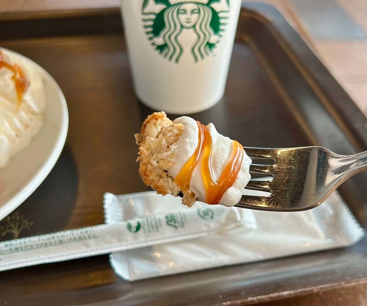 追加で注文したホイップクリームやキャラメルソースと絡めることで、スイーツに格上げ!