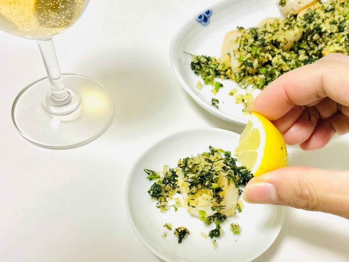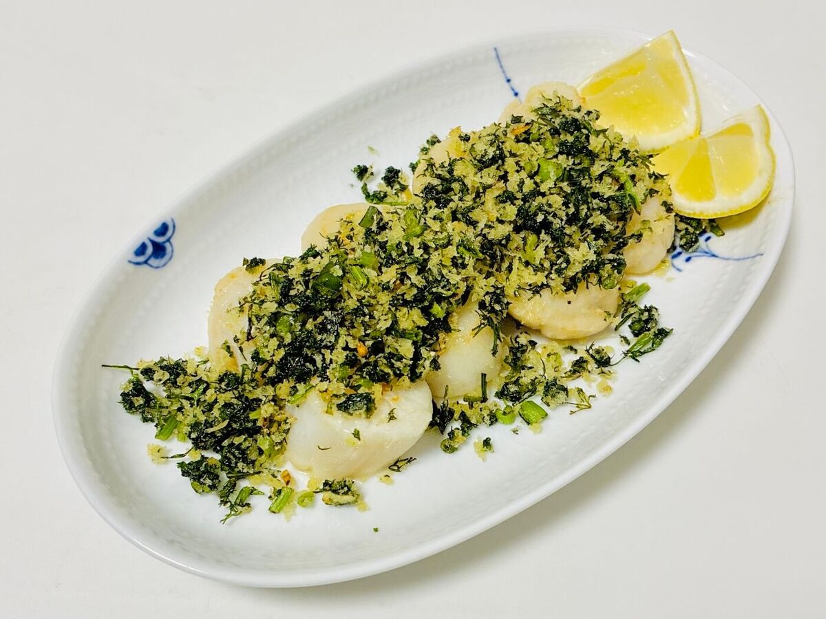私が挑戦してみるのは、BSテレ東『和田明日香とゆる宅飲み』で料理研究家の和田明日香さんが作っていた「ホタテのソテー 香りパン粉ぶっかけ」です。