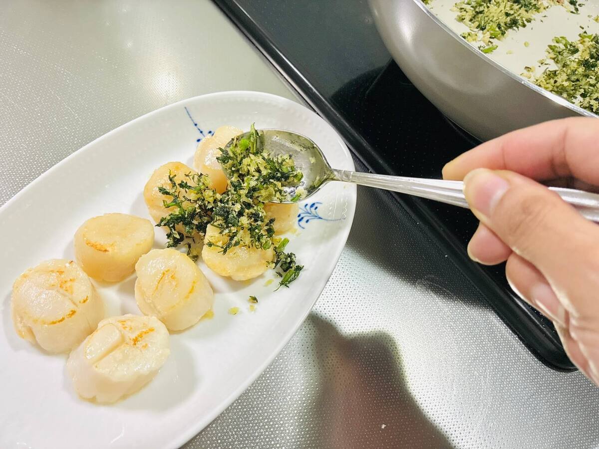 和田明日香さんは【ホタテ】をこう食べる!「ソテー・香りパン粉ぶっかけ」のレシピを実食