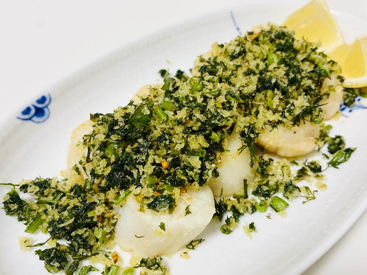 まさかのパン粉との組み合わせでしたが、ホタテとの相性は抜群でした。ハーブとにんにく、オリーブオイルの香りをまとって風味もサイコー。
