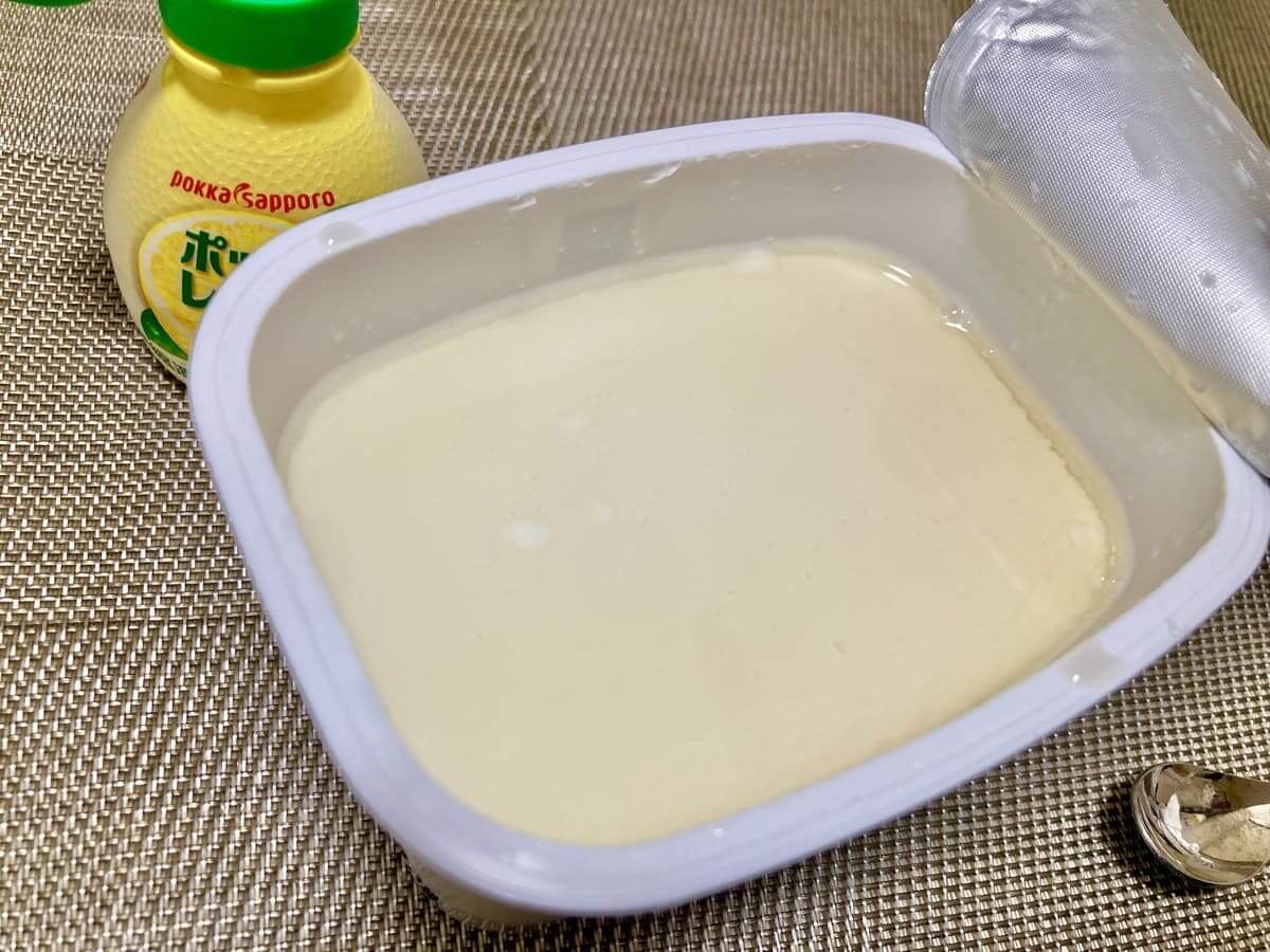 「きっとドロドロになってチーズケーキみたいになってるんだろう」と思ってフタを開けると、そのビジュアルは24時間前と大差なし。