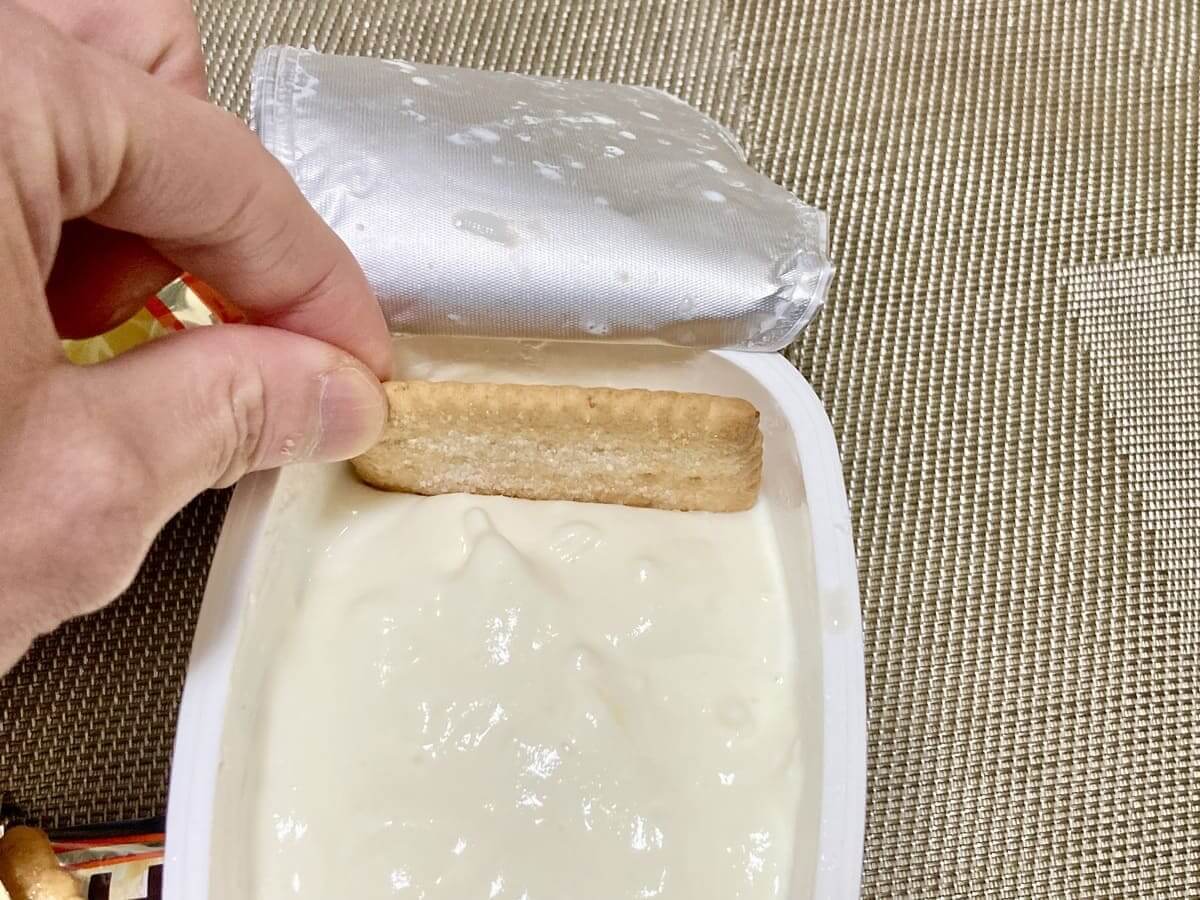 作り方②混ぜたヨーグルトにクラッカーを挿していく