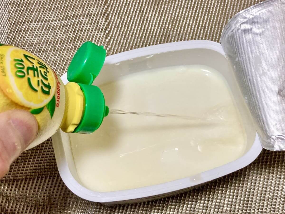 まずはヨーグルトの中にレモン汁とハチミツを入れていきます。