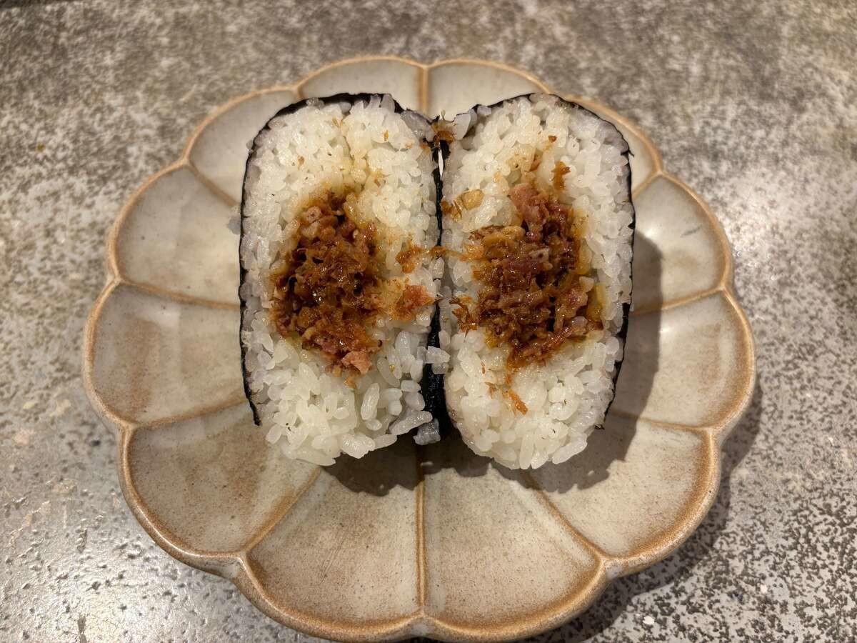 細かく刻んだカリカリベーコンと佃煮になったおかかがたっぷり入った、一度食べたらまた食べたくなる味。