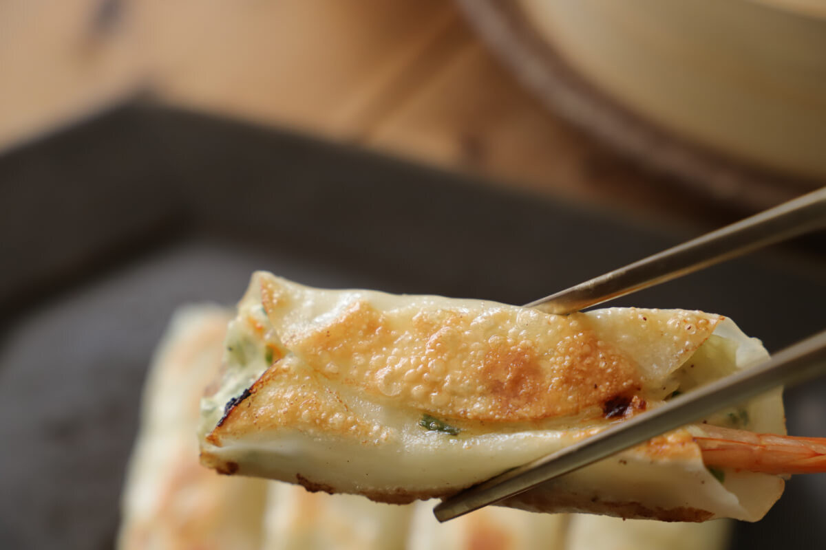 もちもちの皮に、玉ねぎやニラなどの餡の風味と、丸ごと入った海老の上品な旨みが重なります。海老はぷりぷりで存在感も十分。肉不使用なので、あっさりとおいしくいただけました。