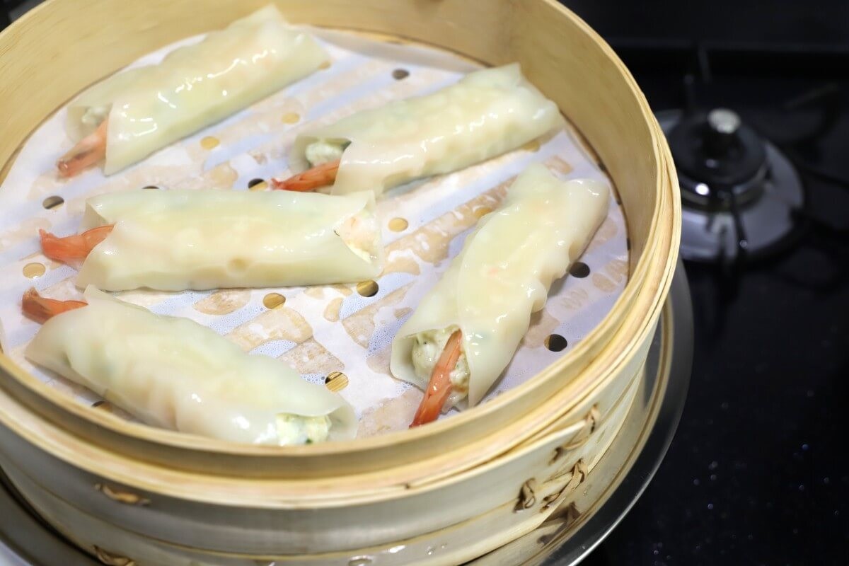 - 蒸気が上がってきたら、商品を凍ったまま蒸し器に入れ、ふたをして7~8分蒸す。