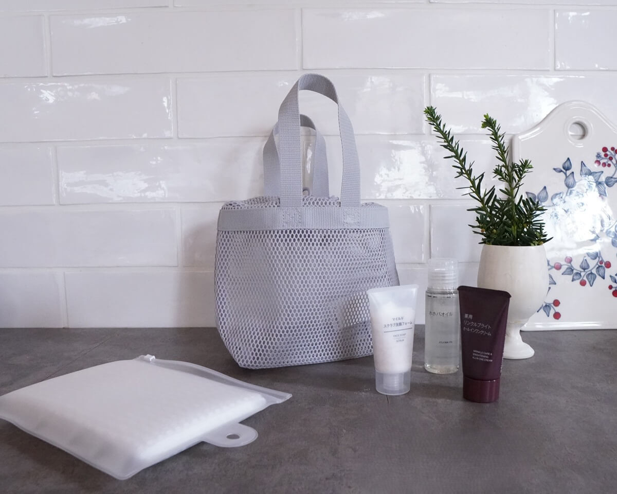 無印良品の立体メッシュ持ち手付き巾着は、