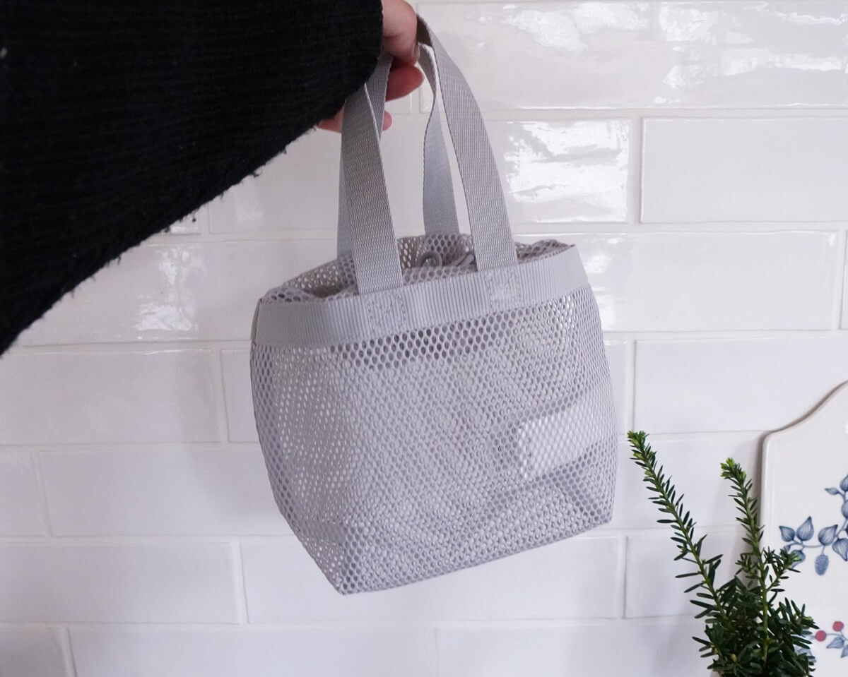 しかし、それを一気に解決してくれたのが、無印良品の「立体メッシュ 持ち手付き巾着」なんです!